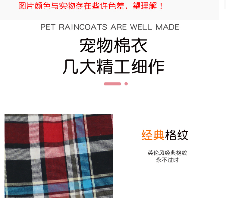 • 产品名称:宠物经典格子棉衣